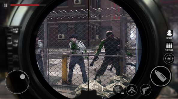 3.进入关卡页面后,左手滑动屏幕选择游戏视角,右手选择开瞄准镜和枪支射击