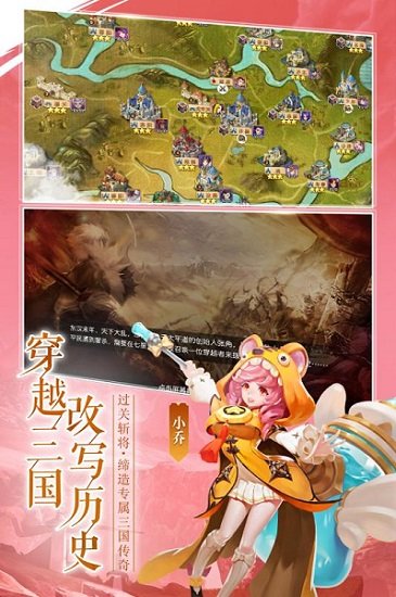 幻想q传是一款穿越战斗题材的幻想风轻战略三国手游,在游戏中玩家意外被召唤到一个不同寻常的三国世界,以打败魔王张角,拯救天下苍生为目标,招募强力的三国神将组成自己的军团,征战世界收复失地,同时建设城池,与其余玩家交互对战,一步步成为强大城主。 养成英雄、募集佣兵、锻造宝物、加官进爵、组建王国、攻城略地……你想要的三国特色游戏玩法全都有!多元一体的玩法打造沉浸式体验,随时随地重返三国战场!