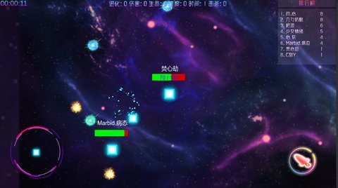 这是一款科幻风格的休闲Io竞技游戏,游戏中需要玩家控制一个初始元素进行生存,结合了经典的Io玩法模式,吞噬其他玩家不断的成长,进化成为最强大的元素之神。