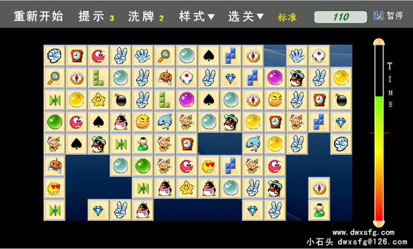 石头连连看是一款很休闲的连连看游戏,在石头连连看单机版游戏中消除物品的样式有4种可选,分别是水晶、QQ、国旗,动物,有十个关卡可选,即十个消除方向,能提交比分的连连看游戏,石头连连看下载后还可以跟网友比试谁的分数高。