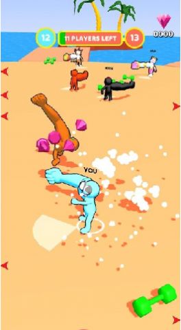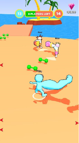 1、点击开始游戏,随意滑动屏幕控制角色移动获取哑铃,增强麒麟臂。