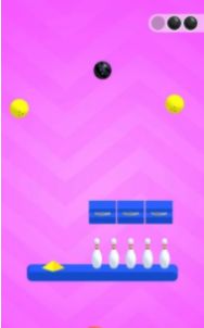 2、当你松开手指,保龄球就会下落撞击到球瓶。让你它自由滑动下去;