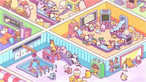 1、运营修建呆萌设计风格的玩具厂,四处都是有孩子气的公仔,用你手里的设备将他们抓起来。