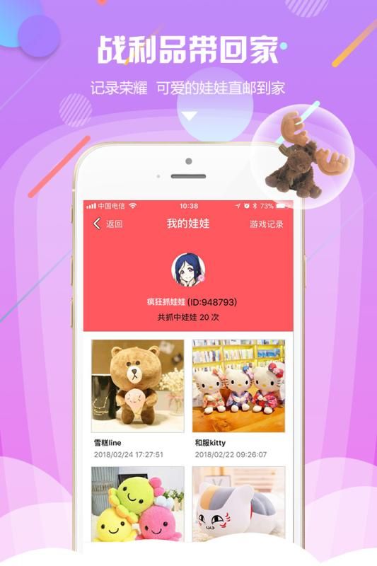 手机端抓娃娃的休闲乐趣,抓到还可以邮回家。