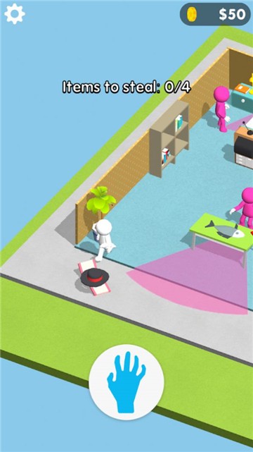2.移动时避开这些保安,以免他们抓到你,在每个场景中,都会执行盗窃任务。