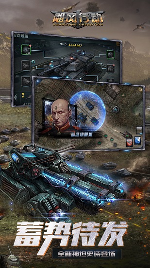 坦克策略RPG飓风行动,2D野外场景全面还原战场环境,上百款高还原经典坦克悉数登场,讲述各型坦克的前世今生,二战著名指挥官群雄聚首,带你领略别样的二战风采,更有来自未来时空的另类坦克,让喜欢军事的你眼前一亮!策略坦克随心搭配,驰骋沙场,战事一触即发,烧脑作战,书写属于你的二战历史!