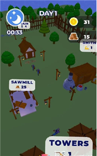 1、游戏还分白天和晚上,白天主要是安全的,会有伐木工出去收集木材,
