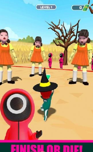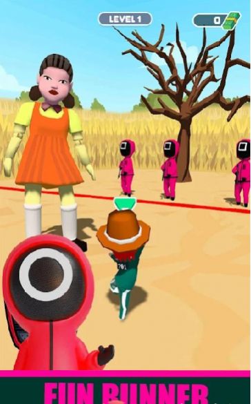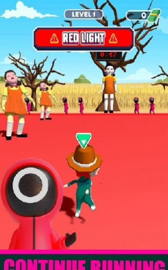 鱿鱼游戏赛跑者游戏是一款改编自同名电视剧的冒险闯关游戏。在令人恐惧的123木头人游戏中,我们要敏捷的进行游戏,当鬼背过身的时候我们要快速冲刺,而当鬼转身过来的时候我们则必须快速停下脚步,否则就会被鬼给疯狂射击从而淘汰出局。