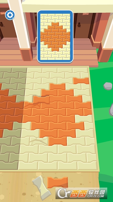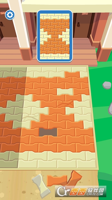 游戏中,玩家必须移除破碎的砖块并找到并更换相同颜色的新砖块;