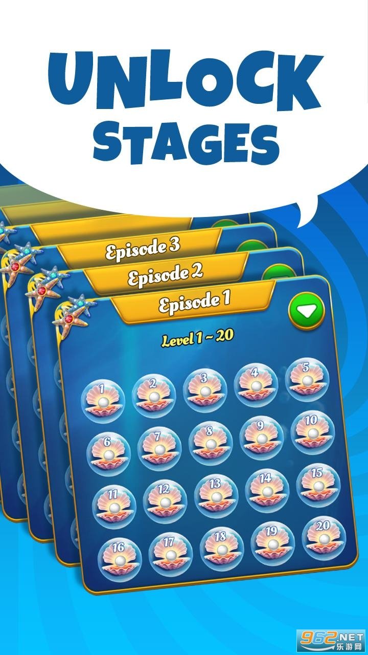 与其他任何三消益智游戏不同,在海洋世界梦境中放松。在珊瑚中畅游并探索海洋生物时,遇到并匹配可爱的海洋朋友,如海星,贝壳,水母等。