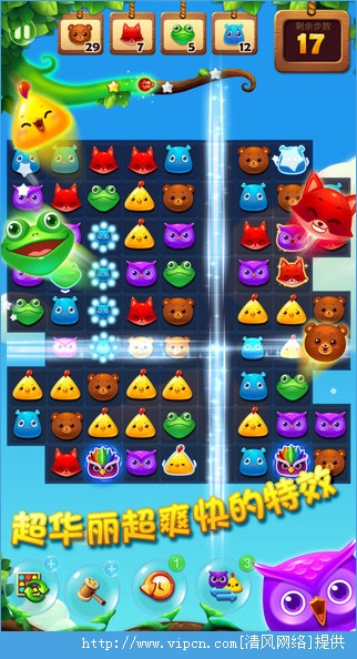 4、数10种炫目华丽的特效,直线特效、爆炸特效、混合多排消除、全屏爆炸;
