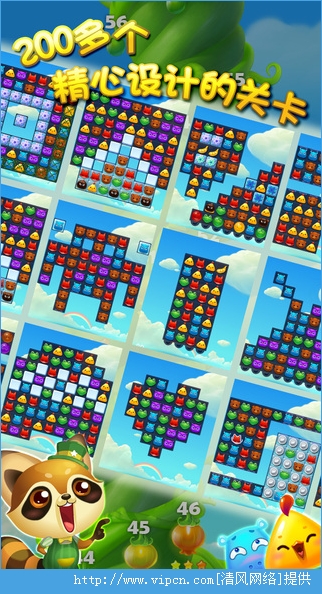 开心消消乐最新手机安卓版是一款人气非常高的消除游戏。顺着藤蔓前往”来自星星”的云端之上,消灭各种障碍,收集足够多的金色豆荚,去拯救神秘的村长大大!