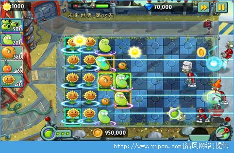 3、游戏同时集成了即时战略、塔防御战和卡片收集等要素,玩家控制植物抵御僵尸的进攻,保护这片植物园。