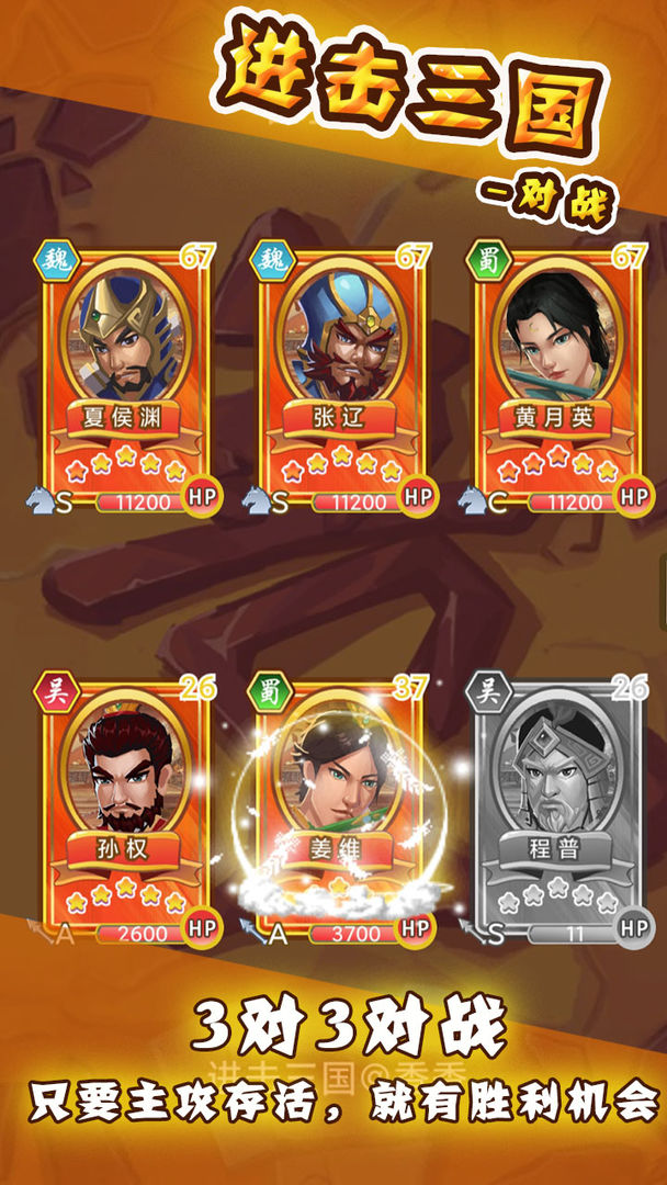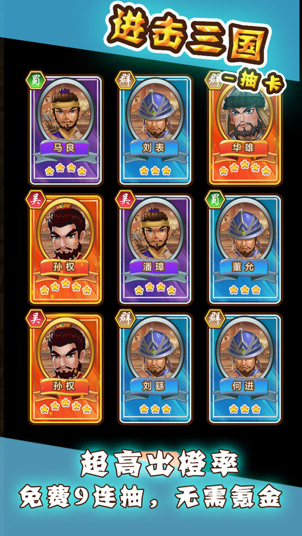 进击三国是一款卡牌策略游戏,游戏Q版卡通风格,超高的出橙率,招募超强的三国武将,带领他们勇往直前,不断的冒险,攻城掠地,对进击三国感兴趣的小伙伴们快来下载吧。