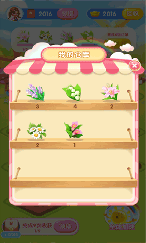 2、新人按提示种植一下花,完成一级订单就可以去。