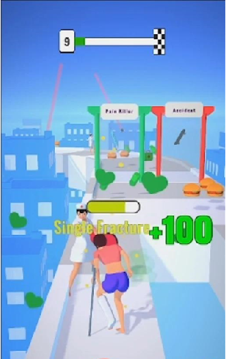 伤跑游戏是一款非常具有创意的休闲跑酷类游戏,这款游戏的玩法非常的有趣,在游戏中玩家们受伤了还坚持着跑酷闯关,在关卡中有着许多的物品可以去进行收集,还有各种障碍和陷阱对你进行阻挠,如果你遇到护士,那么他就会推着了快速前进。