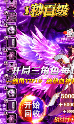 最强开局福利,每日送真充,极致激爽体验1秒百级,1元超低月卡,海量元宝返利,档档超劲爆福利,赢在起跑线!