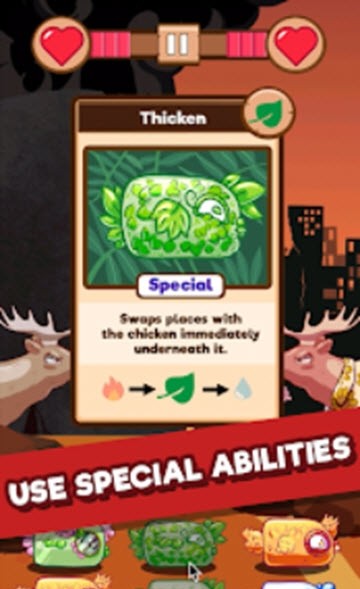 动员你的鸡群,帮助你的驼鹿争夺最终的霸权!利用地球,风和火的力量推倒任何阻挡在顶部的敌人鸡。