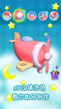3D填色,两指缩放可以放大,当所有颜色填满会有动画效果出现。
