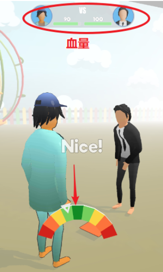 需要你观察右下角的力度条,当箭头移动到绿色区域时力度最大,完成挑战哦;
