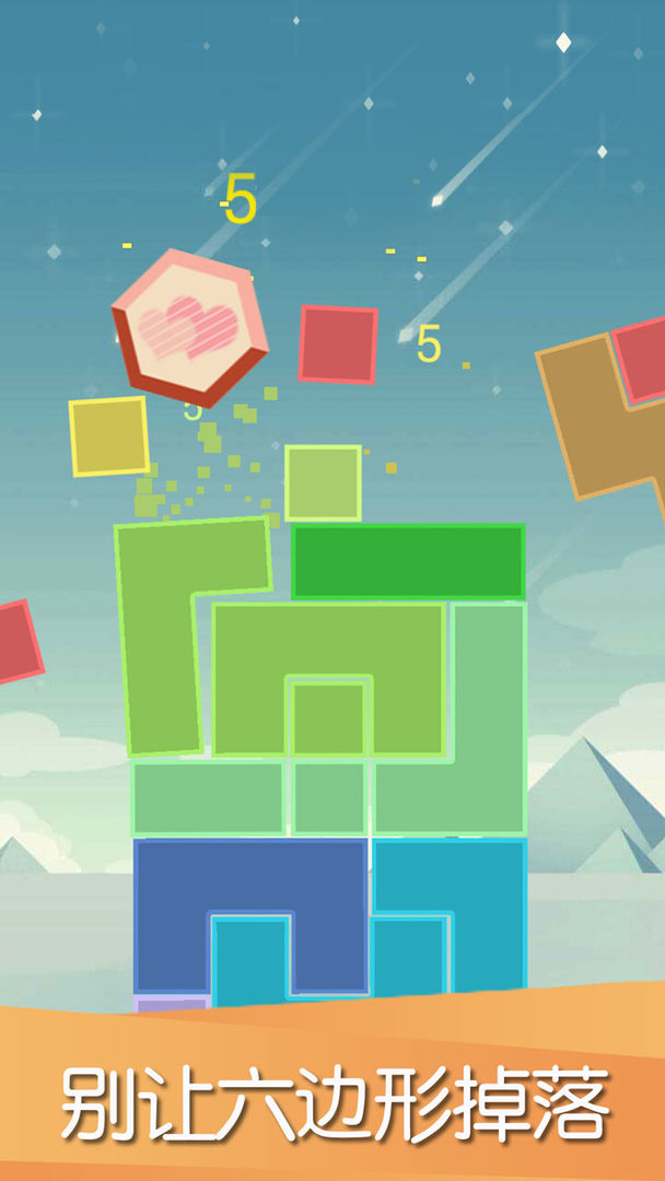 平衡下落游戏免费是一款益智休闲闯关游戏。我们的目标是不要让六边形掉落出屏幕,并且不能让积木搭建的高楼给瞬间崩塌。通过点击屏幕来消除积木让六边形平稳下落,每一次的成功平稳下落都能获得分数,虽然游戏的规则比较简单,但是想要获取高分却不简单,可玩性非常强,喜欢的话就赶紧下载吧!