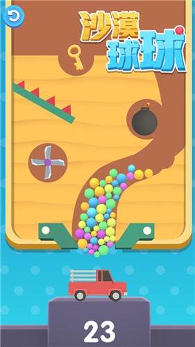 沙漠球球是一款非常不错的休闲益智类游戏,游戏的玩法非常的简单,你需要利用押运货车去制定地点接住落下的小球,合理的规划小球的滑动区域即可,非常的考验动手能力,还有很多的趣味玩法等你来发现,喜欢的玩家也可以将他推荐给你的朋友,大家一起来比拼!