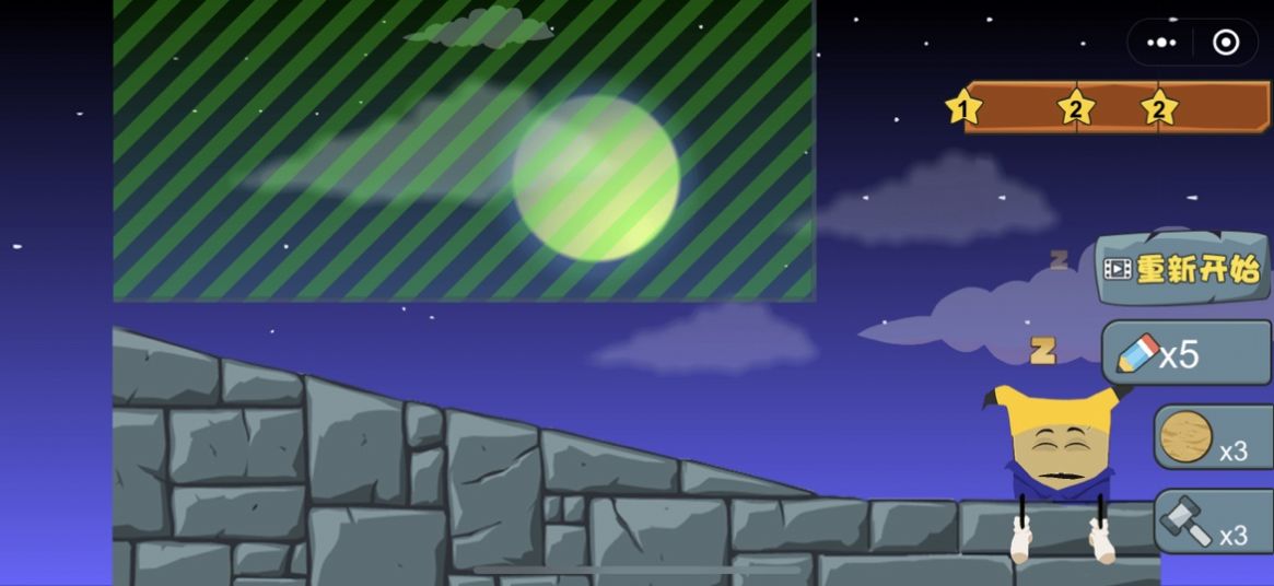 1、画出不同的正方形形状,解决各种问题,使木人平稳地醒来;