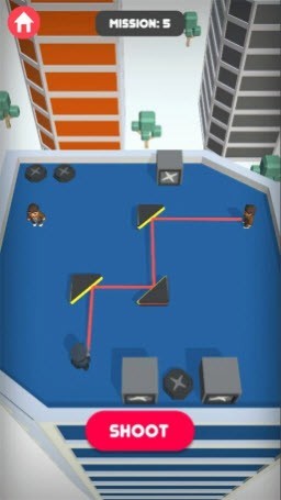 子弹弯曲机是一款可以自由闯关的游戏体验闯关中你要将射出来的子弹通过子弹弯曲机来转变子弹的路线,玩法上还是十分不错的,游戏中的玩法还是非常简单的,将敌人命中之后就可以快速的通关了。