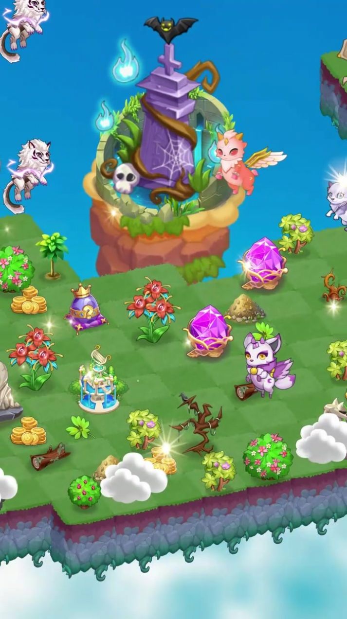 2、开局一座精灵岛,万物皆能合成,解锁土地建造精灵花园吧!