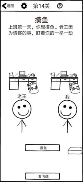 作为一家公司的员工,玩家的任务就是趁着老板不注意偷偷摸鱼,如果玩家被老板发现的话就意味玩家闯关失败。