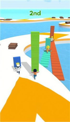 1.不断收集场景中的木材,使用木材建造桥梁,并通过建造桥梁超越对手。