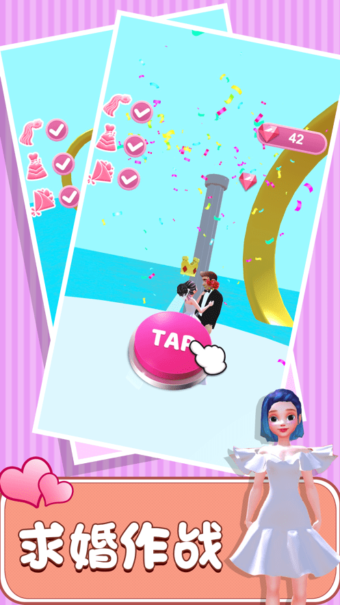 3、丰富的玩法以及关卡让你不会感到枯燥,搭配出最美的服饰与自己心仪的目标来一场恋爱大作战吧!