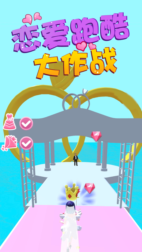恋爱跑酷大作战游戏是一款非常有趣的跑酷闯关游戏。超级浪漫的游戏氛围,身着婚纱一路跑酷,收集各种浪漫的道具,以最美丽的形象抵达终点见到自己的白马王子,还能解锁非常多不同造型的婚纱,赶紧下载游戏体验这场奇妙的婚礼冒险吧!