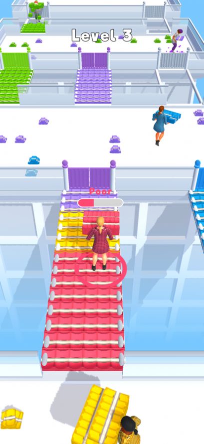Classy Run游戏是一款好玩有趣的跑酷闯关游戏。收集足够多的方块来搭建桥梁,完成各种挑战任务,我们要以最快的速度抵达终点,与其他玩家竞争,永远不要落后,在这里想要赢的话就要以更快的速度才行哦!