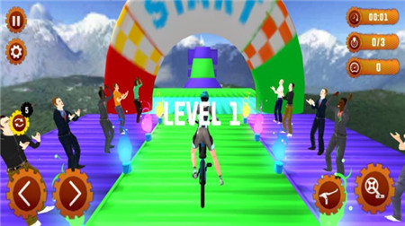 完成特技能够获得不少的游戏分数,解锁更多的小轮自行车去完成越野特技。