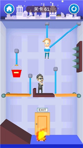 这是一款救援题材的休闲策略闯关手游,玩法类似割绳子。世界上最有趣,最简单的游戏。熊孩子被绑在了一个满满陷阱的房间里,用手指轻扫绳索并进行切割。帮助他逃脱,快来挑战一下自己吧!