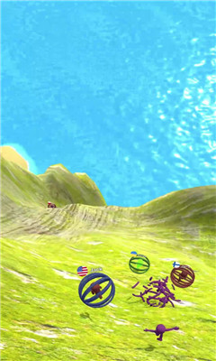 限时挑战游戏,先爬到山顶的玩家解锁攻击力,发射球球阻挡山下的对手;