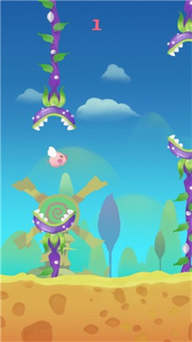 千万别撞到有害的食人花哦,如果撞到小飞猪就会坠落
