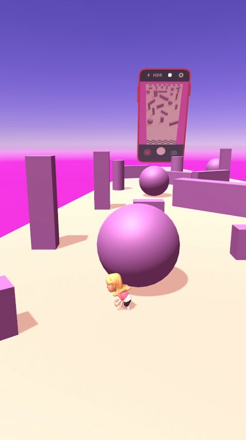 上下左右滑动手机屏幕控制人物移动方向,3秒内躲在下一个物体的阴影中,避免拍照。