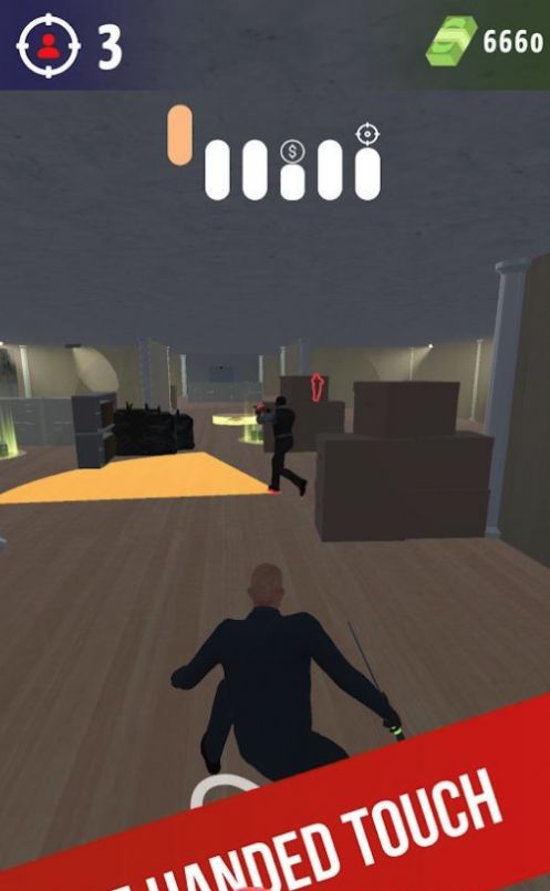 1、滑动屏幕就能控制人物的移动,移动到行李箱的位置就能获得里面的钱财。