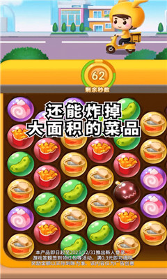 外卖消消乐是一款很不错的休闲消除小游戏这里不仅有着不同的消除模式让你体验,游戏采用经典的三消玩法让玩家体验,视觉特效更精彩,红包奖励很丰富,玩法随时体验。