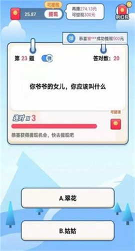 点点答题是一款趣味休闲娱乐小游戏问题涉及的范围很广,超级丰富的游戏题目,这里的金额很多,让用户在线可以体验到各种各样的答题乐趣,一起来玩玩看吧。