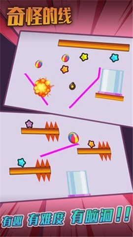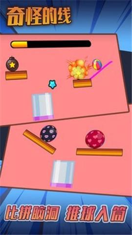 奇怪的线主要是一款益智休闲类游戏,该游戏就是让玩家画出一条条线,让小球通过你画的线和重力,让小球落入到玻璃桶中。玩家需要发挥自己的创造力与想象力。多方面结合,取得更高成绩。任务轻松,关卡丰富。考验你的物理水平。