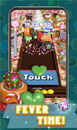 用手指轻击时可以扔糖果,击打相同形状的糖果时会出现新糖果。