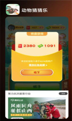 1.动物猜猜乐是一款热门又好玩的红包游戏,看图猜动物获得惊喜福利。