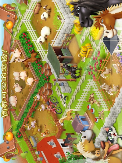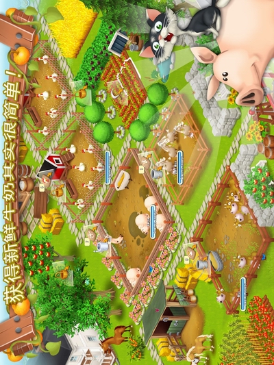 《卡通农场 Hay Day》是一款有趣的模拟经营休闲游戏。从简单的工作开始,喂养动物,种植果树,再修建蛋糕烤炉和冰淇淋机等将新鲜农产品制作成最美味的食物,最终你一定能够扩建你的农场并把它装饰成最美丽、最梦幻的庄园。通过与好友以及全球玩家交易,你一定会成为鼎鼎大名的农场大亨!点击农场邮箱就可以关注其他好友并和他们在路边小店进行互相交易,还可以实时看到其他玩家发布的销售信息哦~