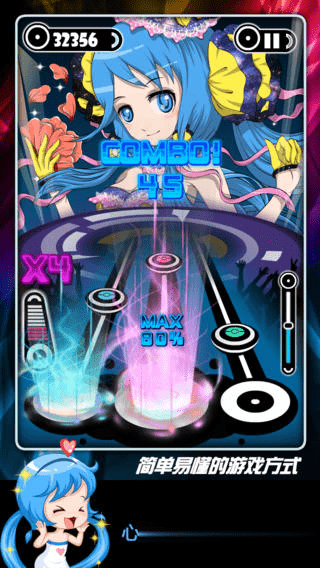 游戏的正如名字一样玩家们需要在游戏中跟随着音乐的节奏完成关卡的挑战,游戏的操作方式虽然简单,但是游戏的难度却不低,海量的游戏曲库等着你来挑战。