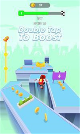 控制着人物在关卡中进行跑酷前进,一边奔跑前进一边收集金币。