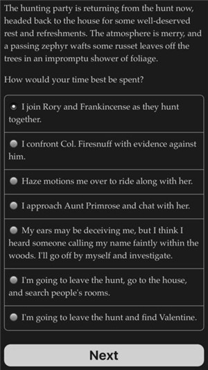 发现目标(Tally Ho by Kreg Segall)是游戏商Choice of Games旗下的一款模拟RPG手游。游戏中你将扮演一个管家,你能解开你的雇主沉着棘手的问题?由于罗冬香的贴身女仆,你会去与势均力敌的阿姨对抗,经手houseguests,管理猎狐和畜栏珍奇鸟类!