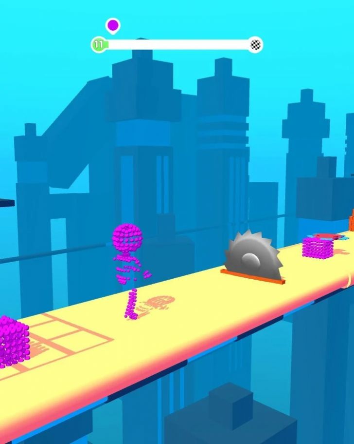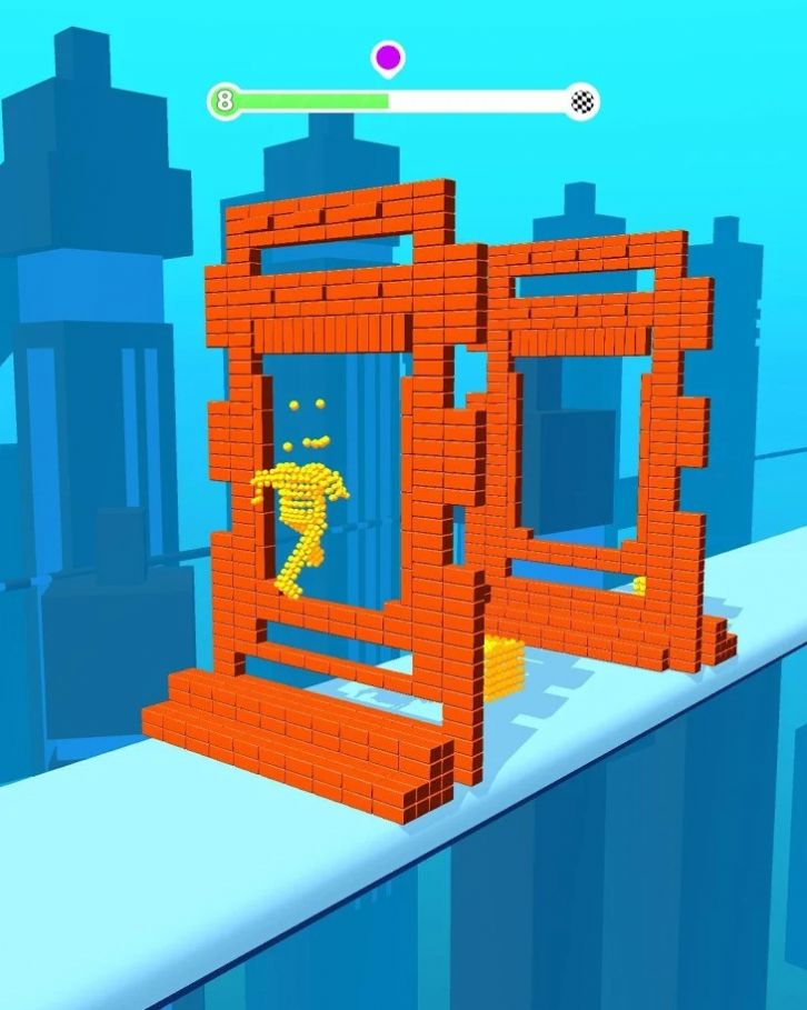 2、如果不能及时跳过去,身上的像素就会像崩溃了一样被撞掉,只有通过获取途中的像素块进行补充。